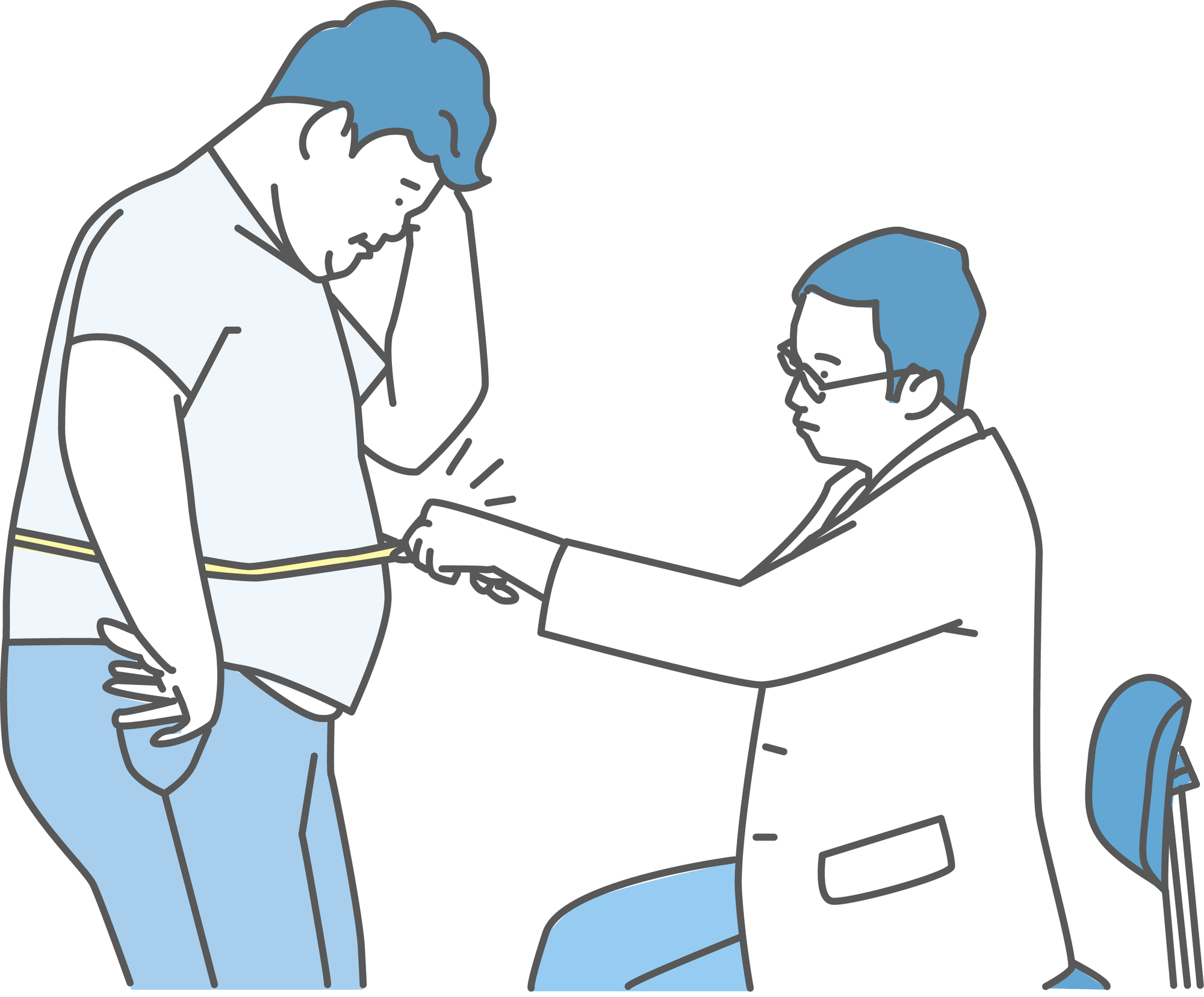 診察、食事・運動指導、身長・体重・血圧測定、血液・尿検査