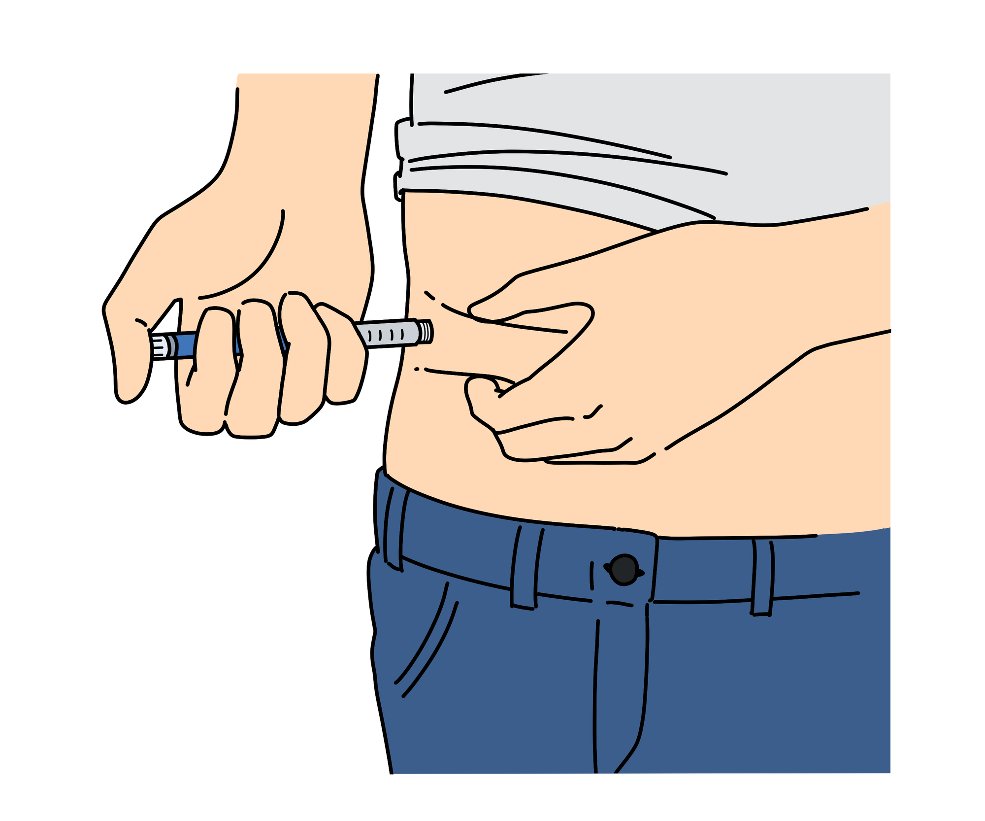 ペン型注入器を使用した自己注射で、食事時間に関係なく毎週同じ曜日に注射を行います。